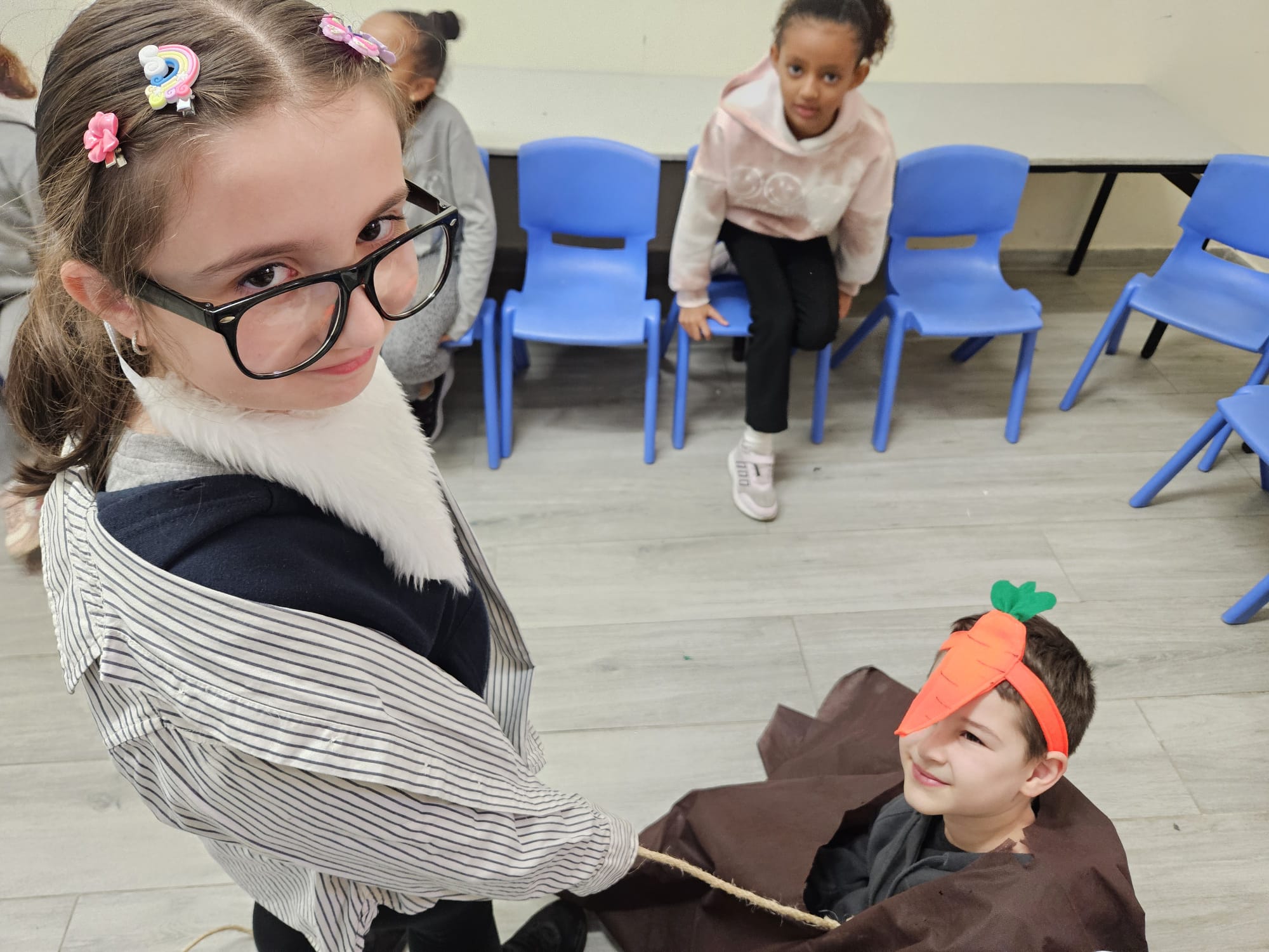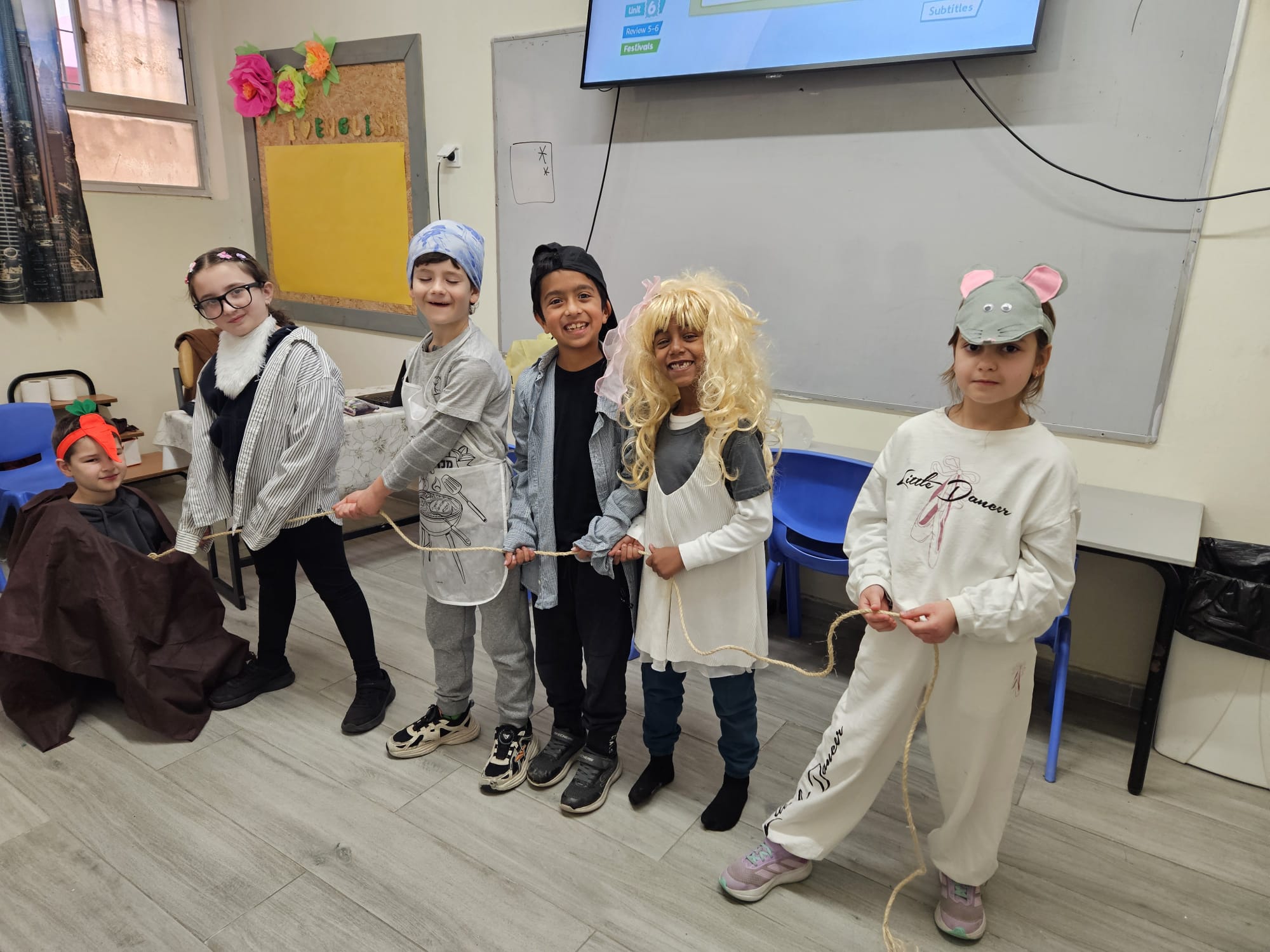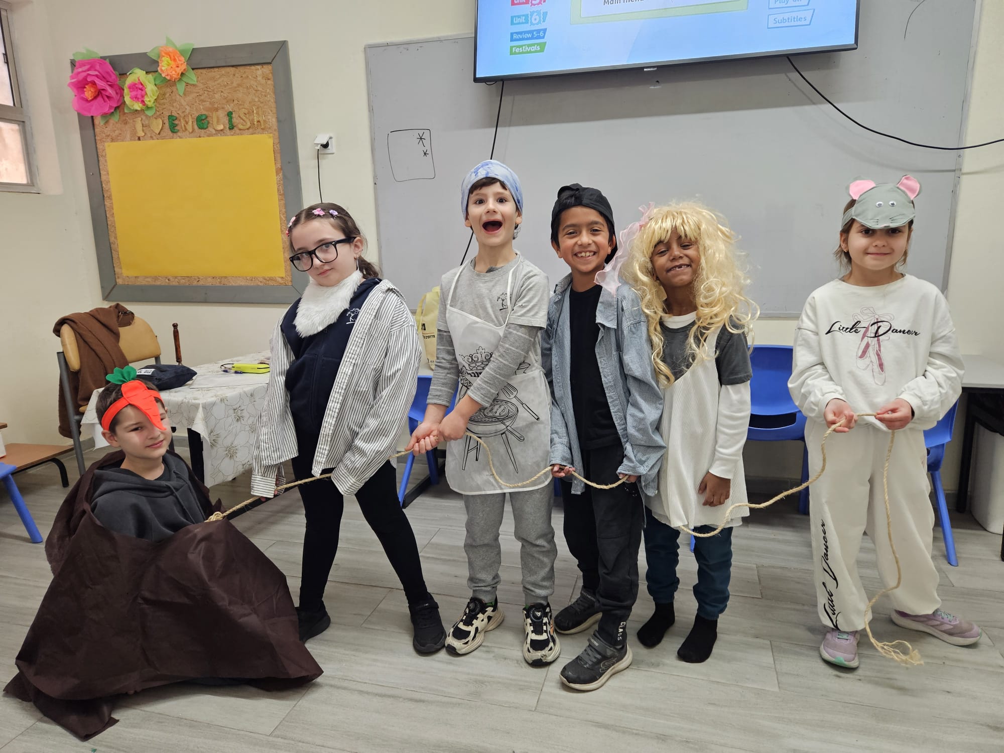 בשיעור אנגלית למדנו על ט"ו בשבט…🌿🌳 ראינו מצגת הילדים למדו מילים שקשורות לנושא וצפינו בסיפור "אליעזר והגזר" באנגלית. "גולת הכותרת" היתה שהמחזנו את הסיפור – לא פשוט לעשות את זה באנגלית. עם זאת, השחקנים עשו את זה מדהים….. וזאת התוצאה 🥕🩷🥰